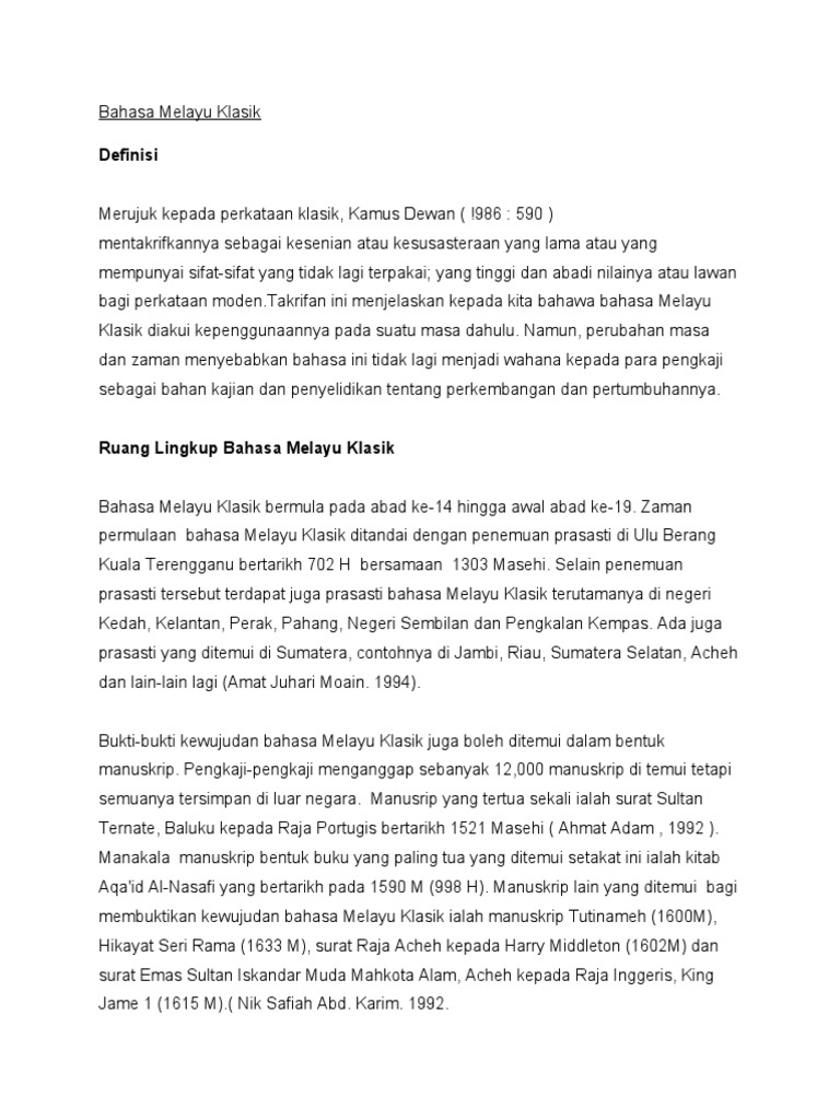 Cikgu zueliza binti w mahyeddin latihan 1. Bahasa melayu klasik disediakan oleh. Download View Bahasa Melayu Klasik as PDF for free.